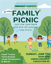 The Nantucket Land Bank is hosting their 3rd Annual Family Picnic at the Creeks Preserve! Come join us to kick off summer with a day of fun including games, face painting, music, and more.