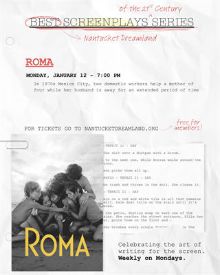 “Roma” screens Monday, January 12 at 7 PM as part of Dreamland’s Best Screenplays of the 21st Century series. Set in 1970s Mexico City, the film follows a domestic worker whose quiet strength anchors a family through moments of change. A deeply human story told with grace, precision, and emotional depth.
