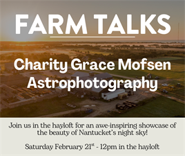 Bartlett’s Farm will host a special talk by acclaimed Nantucket-based astrophotographer Charity Grace Mofsen on Saturday, February 21, 2026, from 12:00–1:00 p.m., offering the community an opportunity to explore the beauty of the night sky through art, science, and storytelling.