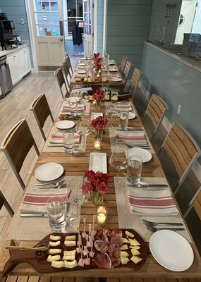 The Hive is located at 5 Amelia Drive. The dinner is a community gathering with a single seating using communal tables. Capacity is limited to 24 guests.