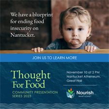 Join Nourish Nantucket for its community presentation series entitled “Thought for Food.” Each program will provide an update on Nourish Nantucket's work to end food insecurity with its network of partners and a short presentation from a guest speaker in the food sector.