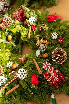 We provide all the supplies, instruction and tips, you get to be creative! Decorate your 12" wreath with any of the available embellishments - scallops shells, pinecones, berries, glitter sprays, fancy baubles, and more. Our staff will be on hand to answer your questions or give design advice.